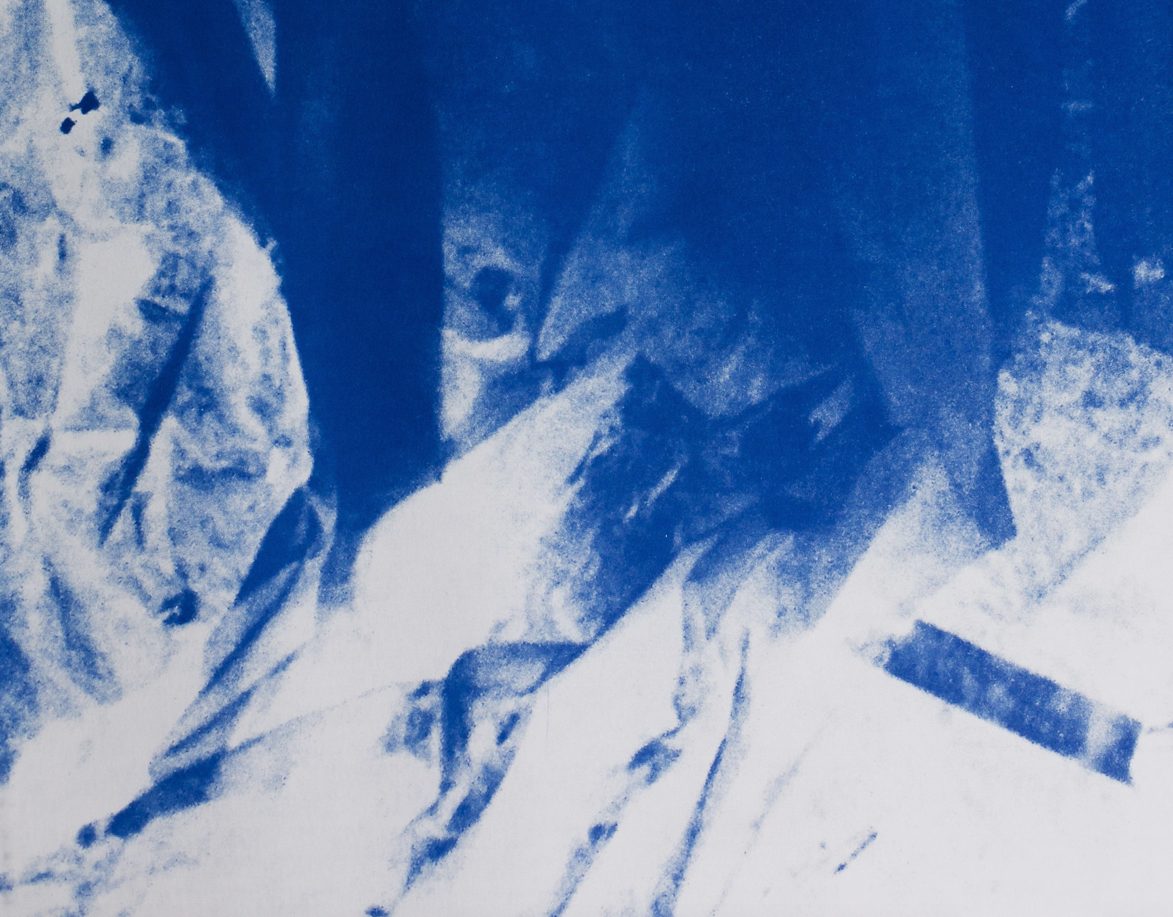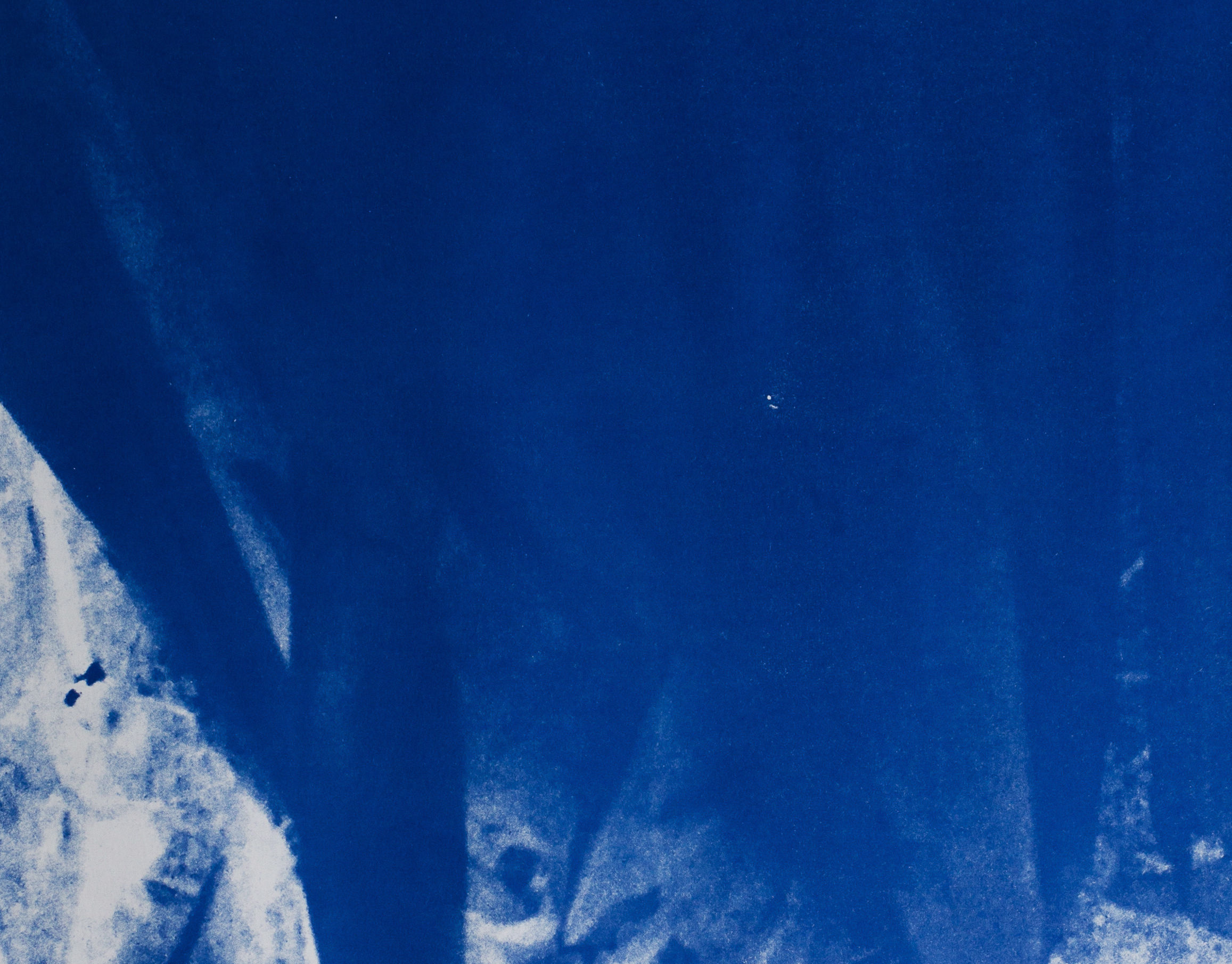 Quello che avanza è un’installazione ambientale che prende forma come residuo attivo, come ciò che rimane dopo un processo ma che, proprio per questo, continua a generare senso. Una serie di 144 cianotipie realizzate tra il 2014 e il 2017 trasformano lo spazio reale in un campo percettivo dentro il quale lo scorrere del tempo deposita le sue tracce, così come fa il fiume che scivola oltre le finestre di Polytropon Arts Center. In dialogo con le cianotipie, i lavori della serie ARIE introducono una dimensione ulteriore: quella di una materia instabile, sospesa tra peso e leggerezza. Realizzate con piume, pigmenti, plexiglas e cristallo, le opere si offrono come fotogrammi immobili di un movimento invisibile, superfici attraversate dal colore e dalla luce che mutano con lo spazio e con lo sguardo.